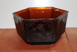 Sherdley Art Deco Hexagonal Amber Glass Kingfishers Bowl.Circa 1925-30. In very nice condition.