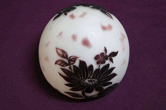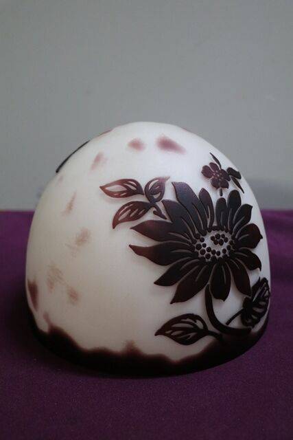 Late C20th Daum Nancy Style Cameo Glass Lamp Shade,, Several available and colours vary.. 15cm high x 17cm dia.