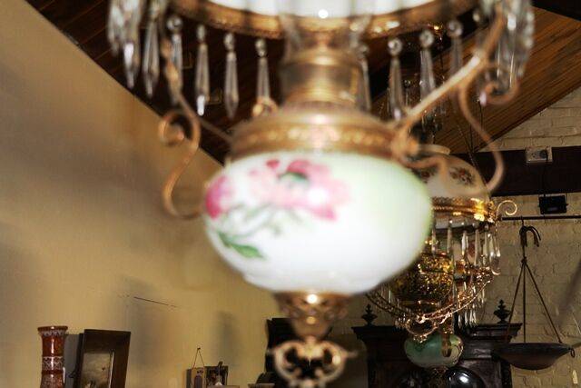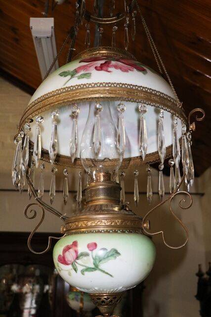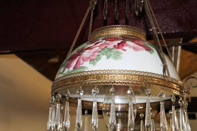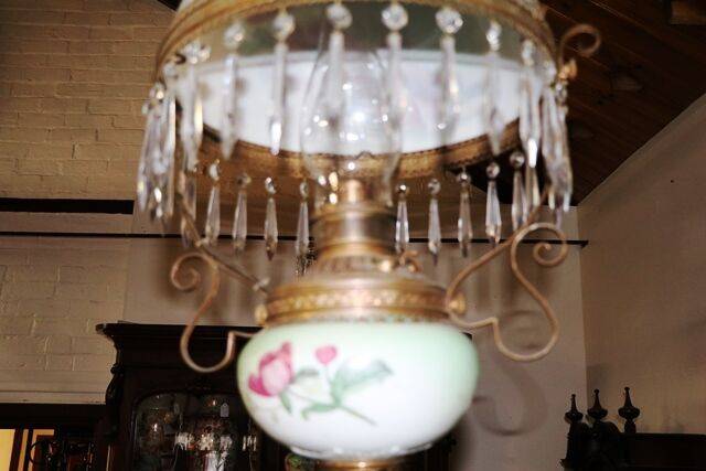 Antique Milk Glass Oil Lamp and Shade. In Very Nice Condition.