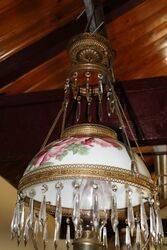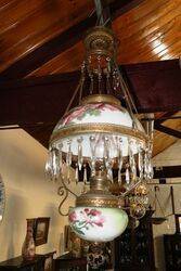 Victorian Table Oil Lamp W/ Original Shade + Font And Brass Column C1900 measures 71cm tall