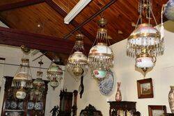 Pair Of Bronze And Ruby Overlay Glass Hanging Lamps