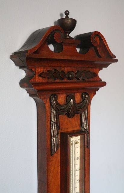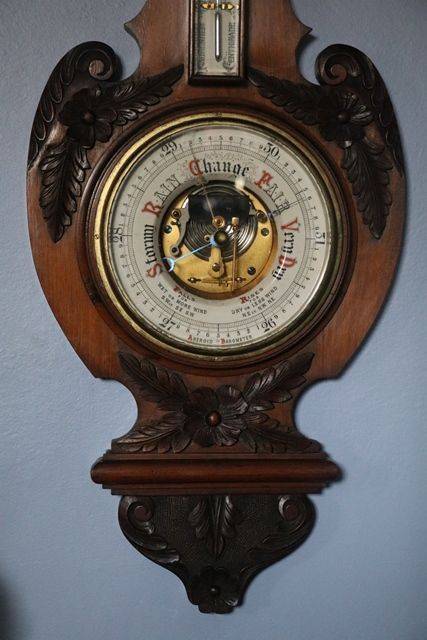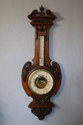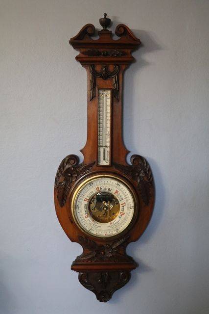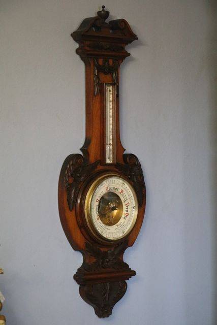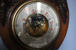 Antique Well Carved Oak Wall Aneroid Barometer With a Visible Movement.. Lovely original example..