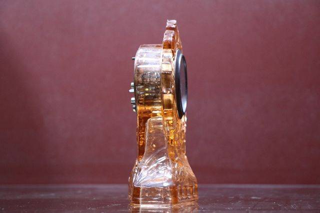 oak 8 day mantle brass faced clock measures 29cm x 44cm x 19.5cm