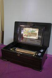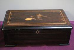 Antique Swiss National Cylinder Musical Box Playing 10 Tunes In Inlaid Rosewood Case C1880