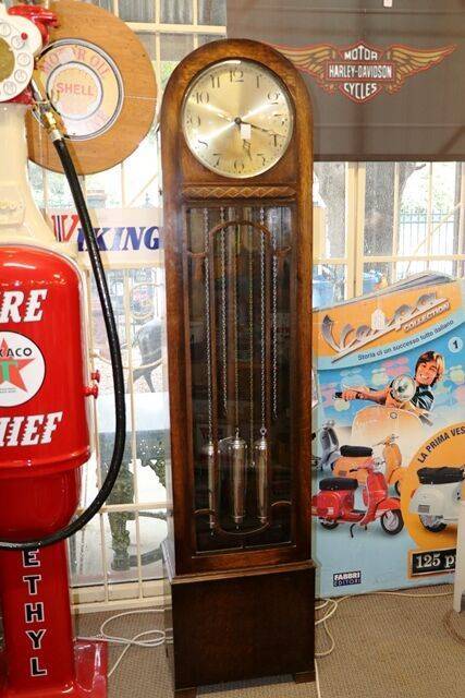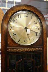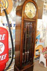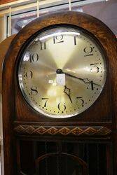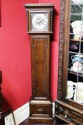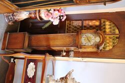 Quality Antique English Oak Grandmother Clock. Arched Dial 1/4 hour Westminster Chime Movement. 167cm high x 32cm wide x 24cm deep.