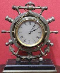 Rare Desk Clock in Form of a Ships Wheel Early Twentieth Century 24 cm high x 18 cm wide x 11 cm deep