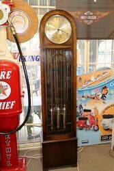 Early C20th English Oak Grandmother Clock 8 Day 1/4 Hour Westminster Chime Movement.. ( SERVICED ) 162cm high x 36cm wide x 22cm deep.