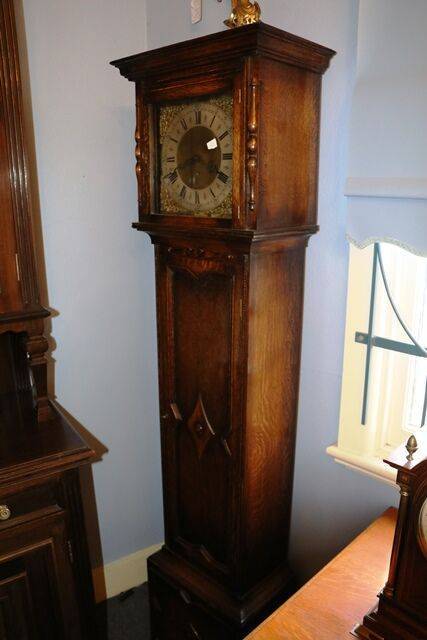 Antique Oak Brass Face Longcase Clock. #