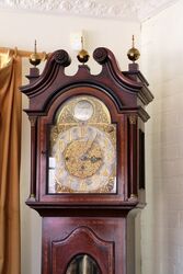 A good quality early 20th century BRUFORD & SON British Grandfather clock. 8-day weight driven movement with quarter hour Westminster & Whittington chime , Brass dial with Silvered chapter ring. Mahogany case with inlaid detail features molded Swan neck pediment with Brass finials above an arched dial door with Restored finish with only slight wear, movement recently overhauled, running and striking correctly