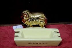 Genuine Ceramic Ram Mounted Golden Fleece Ashtray. Some rubbing to the gilt cig rests.