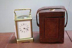 A Quality Antique 19th Century French Brass Repeater Carriage Clock with Original Leather Travelling Case & Key..