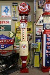 Extremely Rare and Stunning Antique Gilbert & Barker T8 "THEMIS " Manual Petrol Pump Restored in Texaco Livery with a Aftermarket Glass Texaco Illuminated Advertising Globe. The T8 was first introduced in 1907..