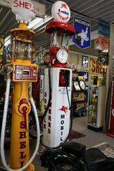 Stunning Vintage SATAM Manual 2 Door Cabinet Petrol Pump. In Shell Livery with a Illuminated Shell Clam Glass Globe. One Word SUPERB.