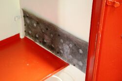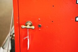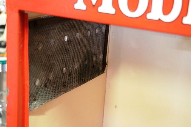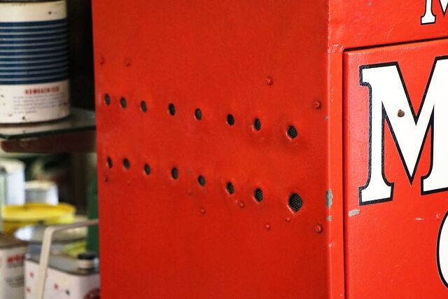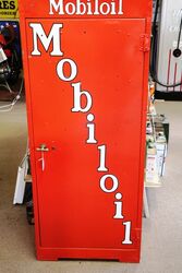 Vintage Mobiloil Single Door Oil Cabinet with Original Enamel Top Sign.