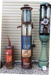 Stunning Vintage SATAM Twin Cylinder Manual Petrol Pump. With Illuminated Shell Glass Globe.
