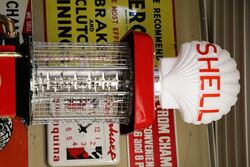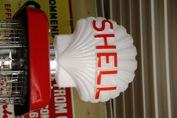 A Superb Restored Vintage Gilbert & Barker Manual Petrol Pump in Shell Livery. Glass 6gal Cylinder & Glass Advertising Globe.