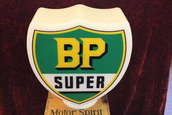Antique GEX Manual Petrol Pump Restored in Golden Fleece Livery. Crack to one of the Twin 5lt Glass Cylinders. Stunning Example.
