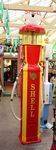 A Stunningly Restored Themis Deluxe Petrol Pump In Shell Livery With Aftermarket Illuminated Glass Shell Clam Globe And Cloth Hose. A wonderful Example Of A Beautiful Petrol Pump