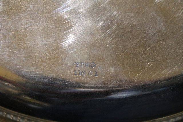 ID: S194A Large Quality Antique Silver Plated Serving Tray with Pierced Gallery on Bun Feet. Wonderful example and in very nice original condition. ( maker JGS in shield ) 70cm wide x 39cm deep x 8cm total Hight.