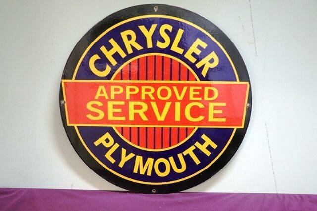 Modern Chrysler Plymouth Approved Service Enamel Sign. Has a Little Age... 60cm dia,