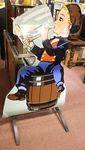 ID: FC1151A rare Victorian antique Staffordshire figure of a Chelsea Pensioner. He holding a jug and glass. He wears a tricorn hat, cobalt blue jacket, light orange waistcoat. He has a peg leg and is on a half circle base which has a gilded line. He is featur
