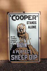 ID: SM764..Lovely And Rare Coopers Stands Alone Sheep Dip Enamel Advertising Sign.. Original with NO RESTORATION, and has great gloss.. 89cm tall 57cm wide