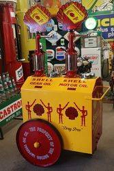 ID: PP678Rare & Early Pyramid Top 2 Pump Oil Cart in Shell Stick Man Livery.. Stunning Example. 100cm wide x 167cm high x 80cm deep