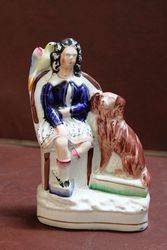 Early Staffordshire Group of Girl with a Parrot and Spaniel. 19cm tall
