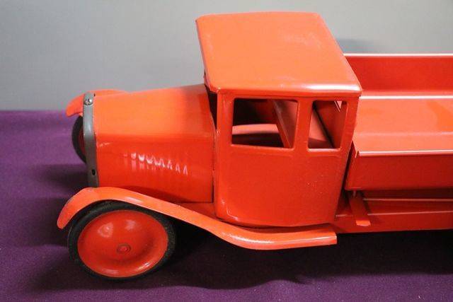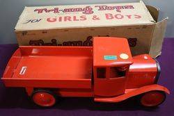 A Wonderful Example of a Tri-ang Toys Tin Plate Tipper Truck.. In fabulous condition and comes with original box.