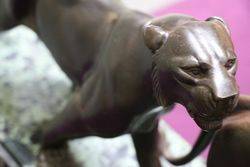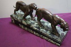 Stunning Signed Pair of Art Deco Spelter Panthers By Rochard