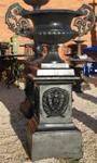 Pizza Urn And Lion Head Base In Cast Iron, 90cm wide x 146cm high.