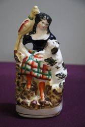 Antique Staffordshire Figurine,Girl With Spaniel And Parrot