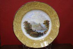 Antique Pratt Ware China Plate, River - Landscape Scene with Gold - Beige Border. C1860 Chip Repaired 24cm diameter