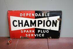 Vintage Champion Dependable Spark Plug Service Enamel Advertising Sign. Dated 1951. 58cm wide x 33cm high.