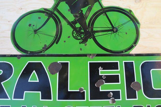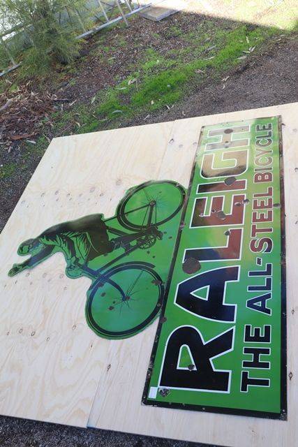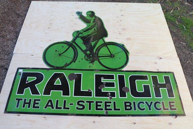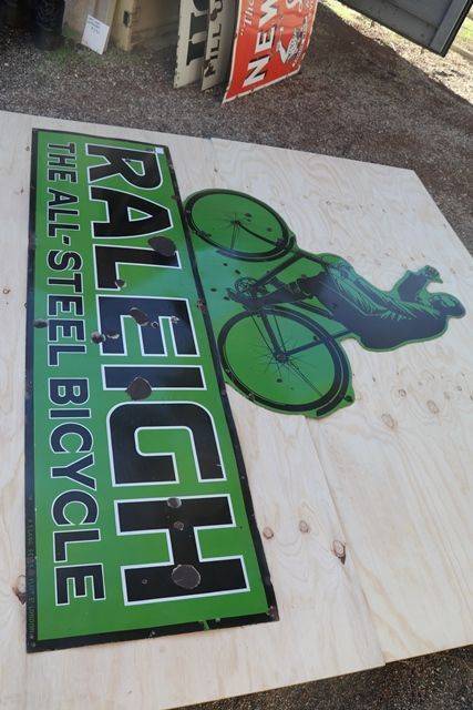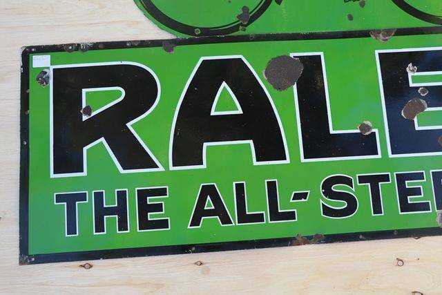 Raleigh 2 Piece Bicycle Enamel Advertising Sign.#