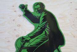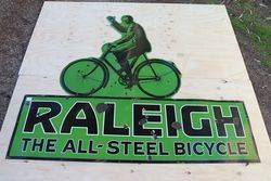 A Large Stunning & Rare Raleigh Bicycle 2 Piece Pictorial Dia Cut Enamel Advertising Sign . In Great Condition.