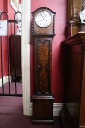 Early C20th Oak Grandmother Clock. 8Day half hour chime movement.. WORKING. 27cm wide x 135cm high x 20cm deep