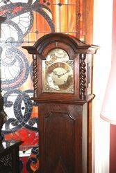 Early C20th Oak Brass Face Grand Mother Clock. With Half Hour Strike Movement. 165cm high x 40cm wide x 25cm deep.