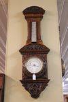 A Very Large Antique profusely carved oak barometer the twelve-inch round silvered dial engraved with the makers details T& H Doublet, 4 City Road, London, the oak case carved with foliate decoration, with fruit to the sides and a female figure with