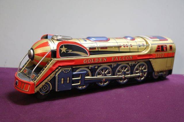 TM Japan Golden Falcon Battery Operated Tin Train Engine Toy. #3202