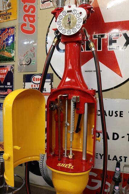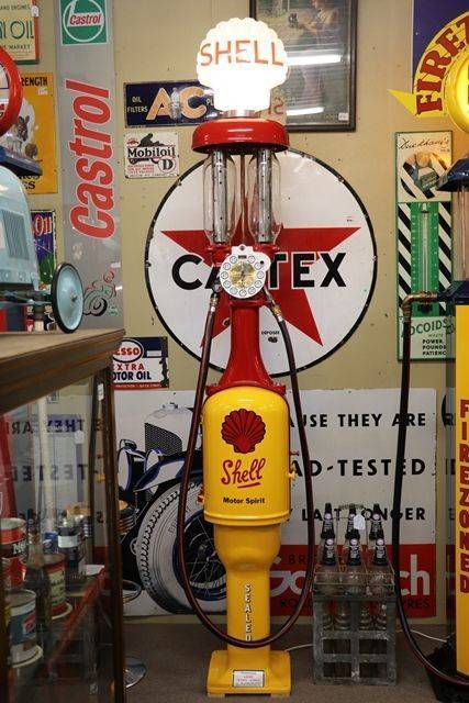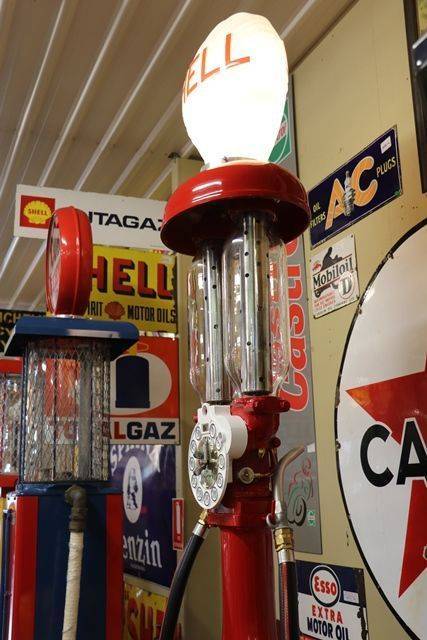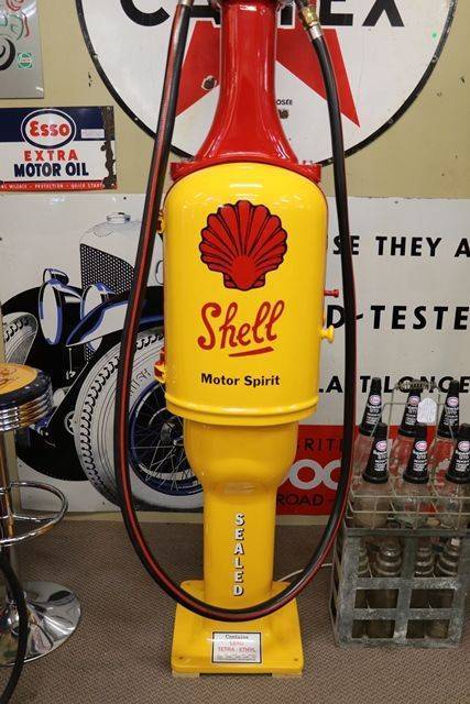 T8 Gilbert & Barker-Satam Manual Petrol Pump.. The T8 was first introduced in 1907 and this Hi bread Pump has been restored to a very high standard. Comes with a illuminated Glass Shell Globe,