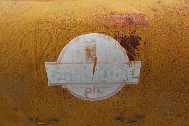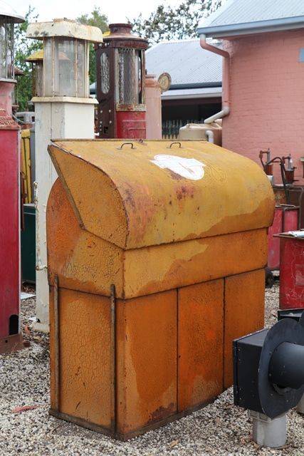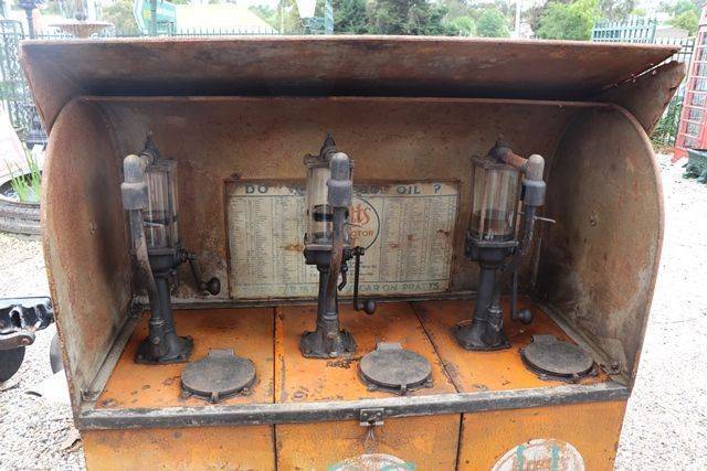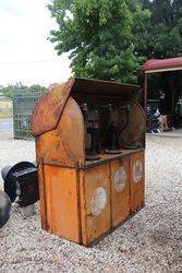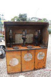 Pratts Bread-bin 3 Pump Oil Oil Cabinet. Fitted with the Rarer Gass Pump Cylinders and Original Tin Chart.