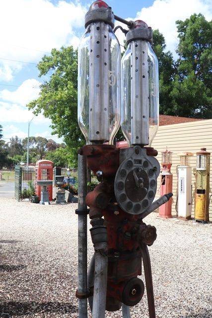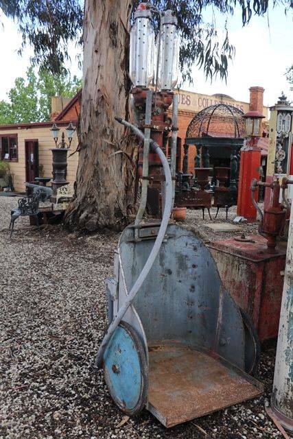 Satam Twin Cylinder Chariot Petrol Pump. A very good original example with little to no rust..
