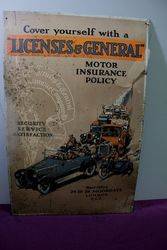 Antique Licenses + General Motor Insurance Pictorial Tin Sign.. Wonderful early images.. 49cm wide x74cm high.
