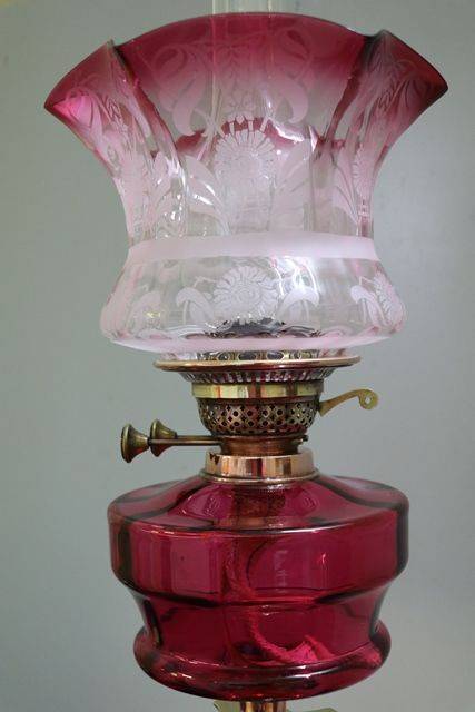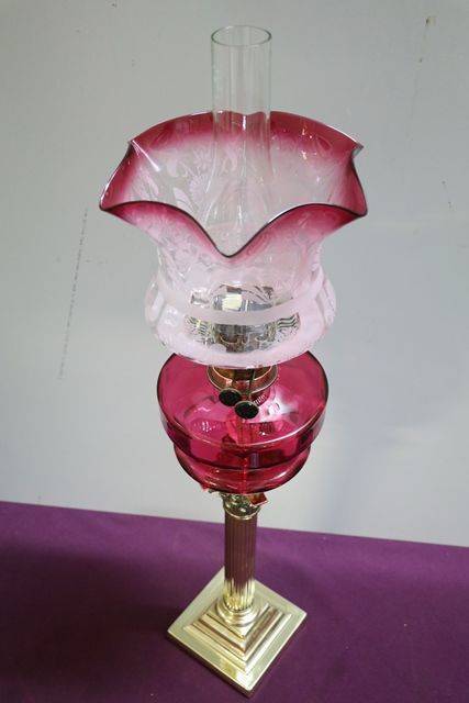 Stunning All Ruby Glass Victorian Banquet Lamp.