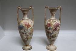 Fine Pair of Henth + Greatbatch Union Pottery Burslem Pair Of Vases C1891-3 12cm wide x 31cm high
