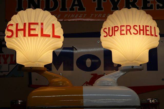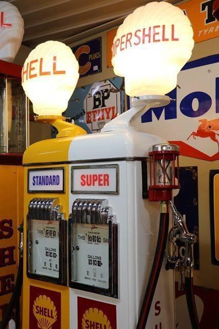 Gilbarco CMD Petrol Pump in Shell Livery. Comes with 2 Illuminated Shell Glass Clam Globes.. This is a Hell of a looker..
