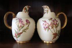 Wonderful Pair of Antique Royal Worcester Hand Painted Jugs C1867