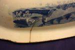 ID: M2162Blue & White Tomb Robbers bowl C1880 measures 27cm x 22cm slight hairline to one side