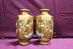 Pair Of 19th Century Satsuma Vases 19cm tall 10cm diameter
